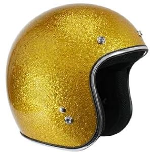 Get Ready, Set, Go! Ride in style in this updated retro inspired 3/4 helmet from Outlaw helmets. This helmet is lightweight, fits low to your head and doesn't make you look like an astronaut! With gold mega flake finish, injected molded ABS shell design, comfort padding, impact absorbent liner and it's DOT approved; this is function, style and protection rolled into one cool helmet. Item Details Gold Mega Flake gloss finish 3/4 open face helmet Injected molded ABS shell Sleek and lightweight design for a open face helmet Comfort Padding Impact absorbent liner Comes with a three-snap button Gold bubble visor 5 snaps for that classic vintage look and for aftermarket shields and visors Vintage style chrome strip around the opening Moisture-wicking helmet liner and cheek pads: Breathable, lightweight and soft (cheek pads are removable and washable) Padded chin strap with quick-release closure system and strap keeper Back snap-button goggle keeper Average helmet weight 2.75 lbs; weights will vary upon size DOT Approved